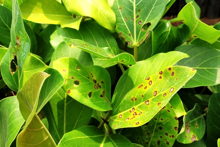 6. The necrotic tissues usually fall off resulting in formation of shot holes symptoms.