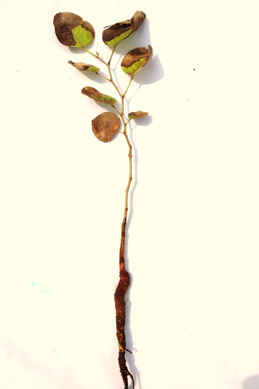 Seedling wilt disease symptoms of Pterocarpus santalinus (Red Sanders)